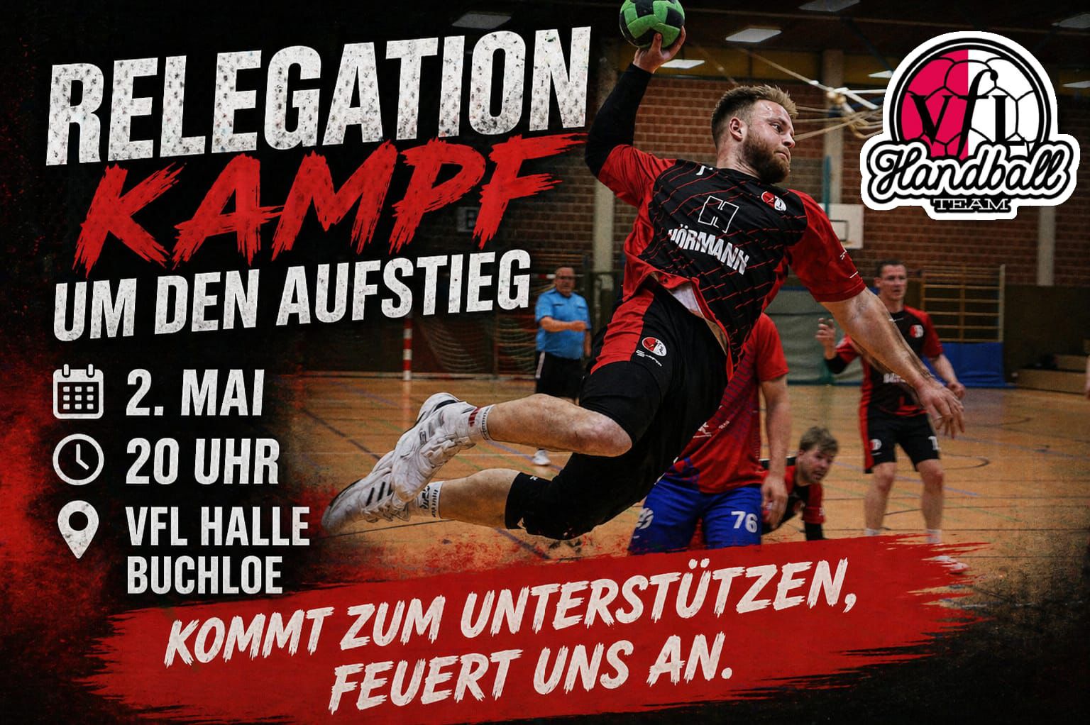 | Rückspiel der Relegation um den Aufstieg der Buchloer Handballer. Kommt vorbei und helft den Aufstieg zu schaffen. Für das leibliche Wohl ist gesorgt. |