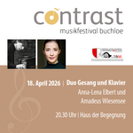 | Anna-Lena Elbert, Gesang, und Amadeus Wiesensee, Klavier, gestalten den Samstagabend beim contrast-Festival 2026 Mehr Informationen: www.contrast-buchloe.de Foto: contrast Buchloe |