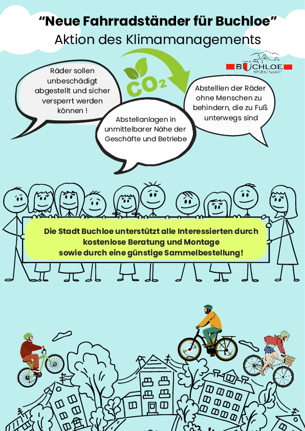 Wir vom Klimaschutz Buchloe haben tolle Radständer gefunden, die diese Kriterien erfüllen. Zu finden sind sie etwa am Freibad oder auf der Parkfläche vor dem Weltladen. Diese „Radparker“, die individuell zusammengestellt werden können, würden wir